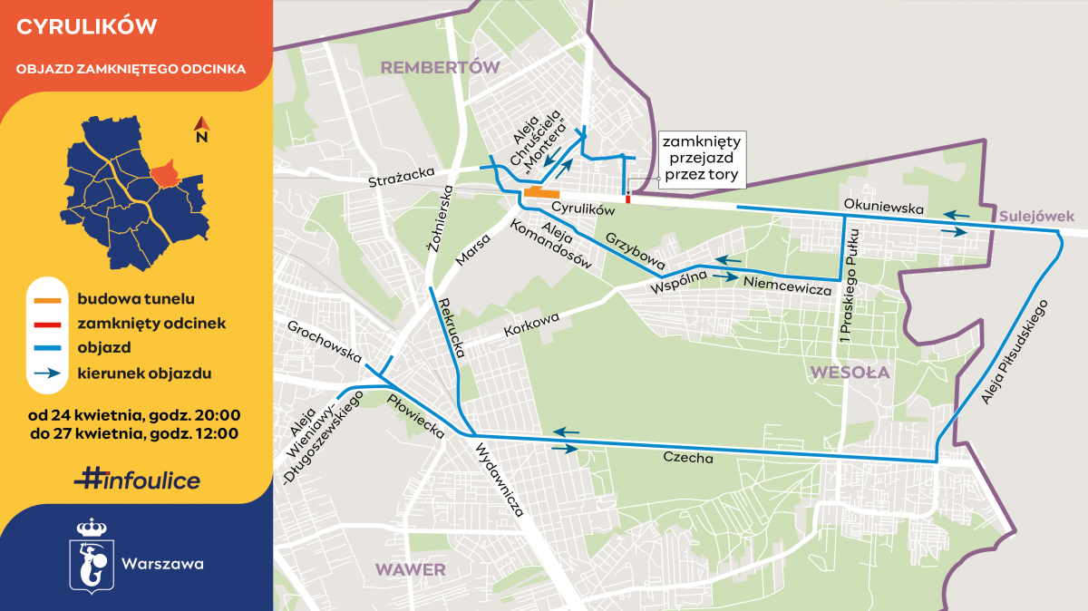 Objazd poprowadzi: 1 Praskiego Pułku w Wesołej, Niemcewicza, Wspólną, Grzybową i Komandosów do Marsa.