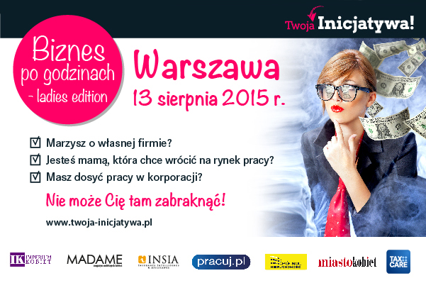 Fundacja Twoja Inicjatywa! zaprasza wszystkie panie zainteresowane własnym biznesem na warsztaty z cyklu Biznes po Godzinach, które odbędą się 13 sierpnia w Warszawie w Hotelu Airport Okęcie. Będzie to ostatnie spotkanie w tegorocznej letniej edycji Biznes po Godzinach. W czerwcu i lipcu odbyły się spotkania w Krakowie, Poznaniu i Wrocławiu, gromadząc prawie 300 uczestniczek!