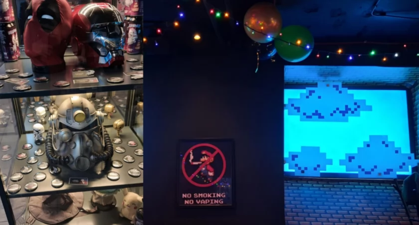 To zdecydowanie coś więcej niż klasyczny bar — to przestrzeń, która celebruje kulturę gier i popkultury. W środku znajdziesz konsolowe stacje do gier, automaty retro, a także bogatą kolekcję gier planszowych. Atmosfera jest luźna i przyjazna, a wnętrze urządzone w stylu nawiązującym do klasycznych gier wideo i kultowych symboli geekowych — od neonów przypominających arcade’y po dekoracje z kultowych produkcji.