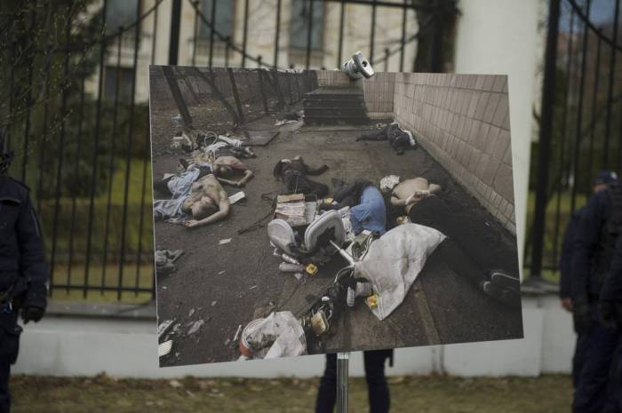 Zaraz po wybuchu wojny przed rosyjską ambasadą rozpoczęły się protesty. Brali w nich udział nie tylko Ukraińcy i Polacy, ale też Rosjanie oraz Białorusini: