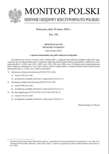 Tymczasem minister energii Miłosz Motyka określił maksymalne ceny paliw. Ceny mają obowiązywać od jutra, czyli wtorku - 31 marca. Tak w sam raz na zakończenie miesiąca i rozpoczęcie kwietnia...