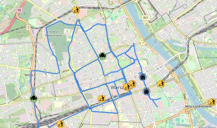 Trasa została zaplanowana ulicami: Krakowskie Przedmieście, Tokarzewskiego-Karaszewicza, przez plac Piłsudskiego, Królewską, Marszałkowską, przez rondo Dmowskiego, Alejami Jerozolimskimi, Emilii Plater, Świętokrzyską, przez rondo ONZ, Prostą, przez rondo Daszyńskiego, Towarową, przez rondo Kercelak, aleją „Solidarności”, aleją Jana Pawła II, Grzybowską, Królewską, Marszałkowską, przez plac Bankowy, aleją „Solidarności”, aleją Jana Pawła II, przez rondo „Radosław”, Okopową, przez rondo Kercelak, Towarową, przez plac Zawiszy, Alejami Jerozolimskimi, przez ronda Czterdziestolatka i Dmowskiego, Marszałkowską, Królewską, przez plac Piłsudskiego, Tokarzewskiego-Karaszewicza i Krakowskie Przedmieście.