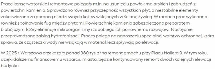 Remont monumentalnego budynku na Placu Hallera (9) w Warszawie wchodzi w kolejny etap.