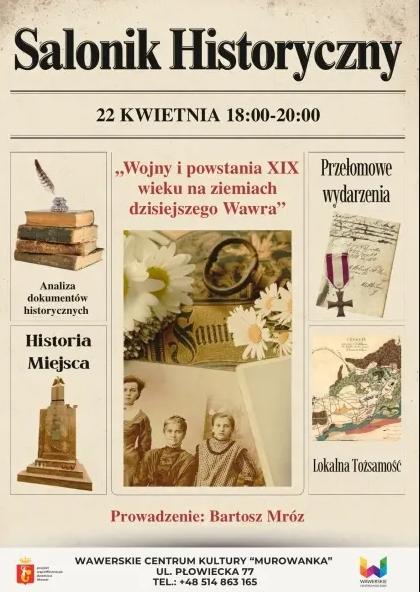 Podczas Saloniku Historycznego spojrzymy na XIX wiek z perspektywy Wawra – a przede wszystkim przez pryzmat lokalnych wątków związanych ze zrywami niepodległościowymi i wojnami tego burzliwego czasu. Zaczniemy od epoki wojen napoleońskich, próbując odpowiedzieć na pytanie, czy działania militarne docierały na teren dzisiejszej Linii Otwockiej? Pojawi się też temat, który do dziś wraca w lokalnych opowieściach, czy Napoleon rzeczywiście był w Wawrze.