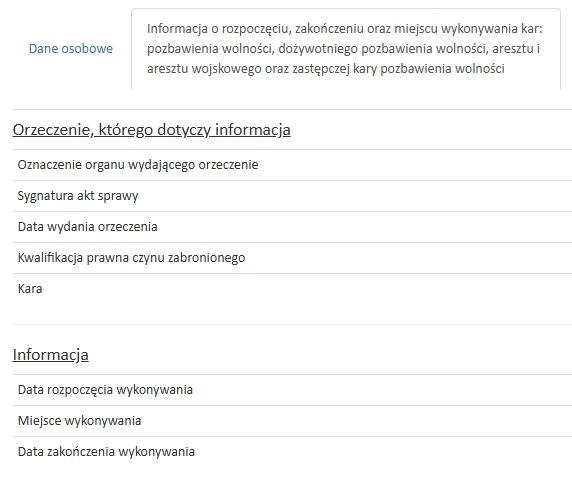 Na "profilu" każdego z zarejestrowanych przestępców seksualnych, można znaleźć też sygnaturę sprawy oraz inne informacje, pozwalające sprawdzić, czy i jak długo dana osoba odbywała karę pozbawienia wolności.