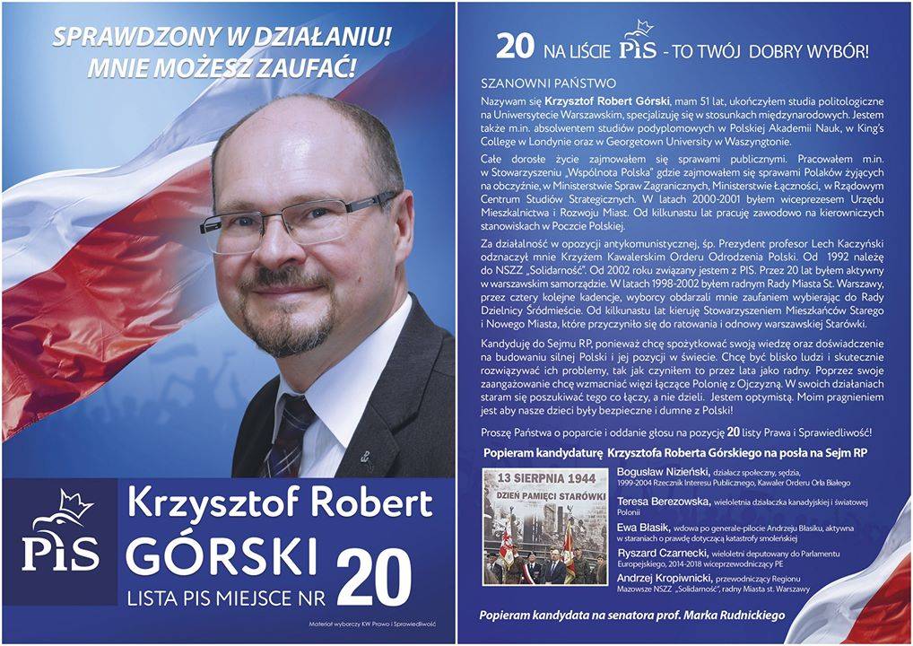 Wybory Parlamentarne 2019, Prawo i Sprawiedliwość, Krzysztof Robert Górski - zdjęcia