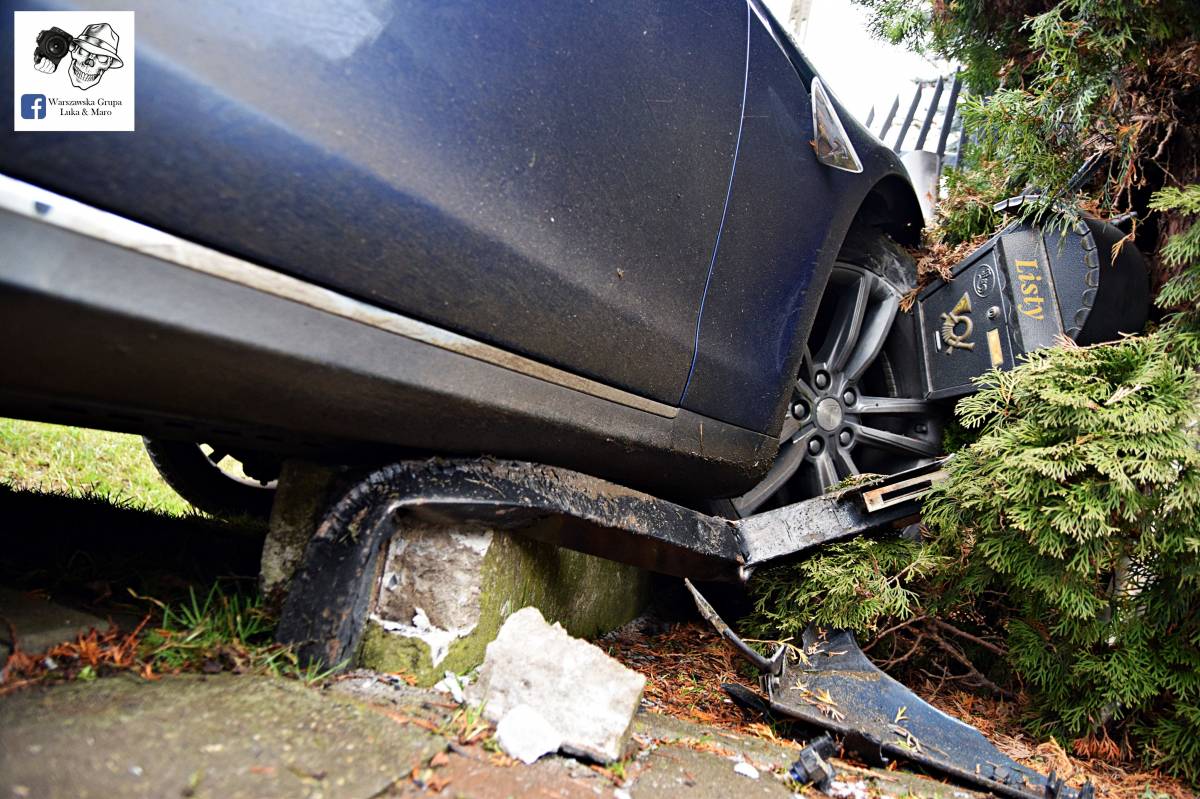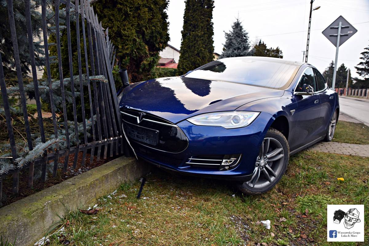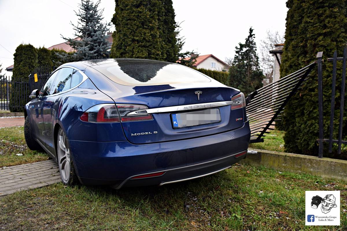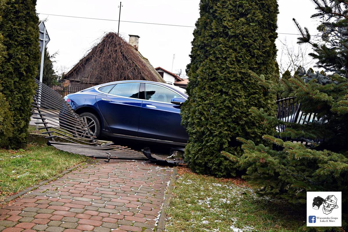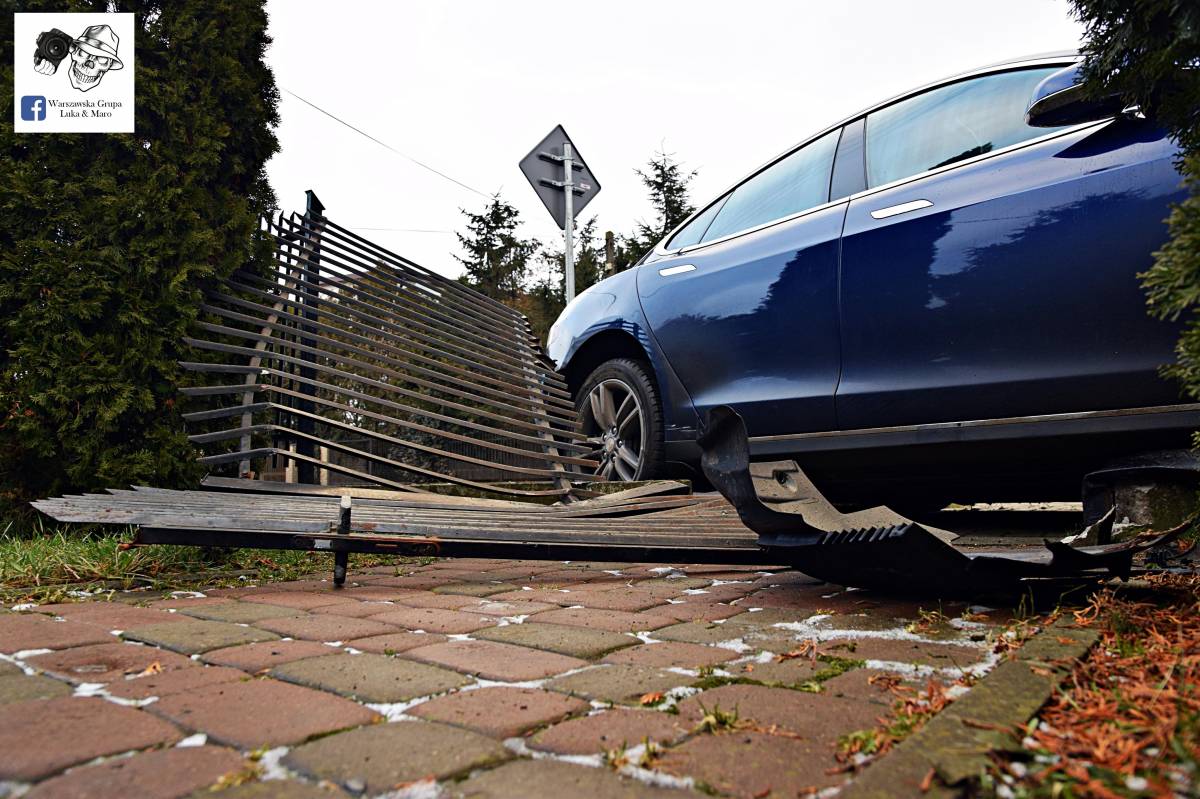 Zdjęcia Teslą wjechał w płot - fotorelacja
