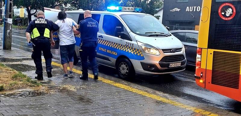 Ułożył się do snu w drzwiach autobusu. Drzemkę przerwali mu strażnicy miejscy