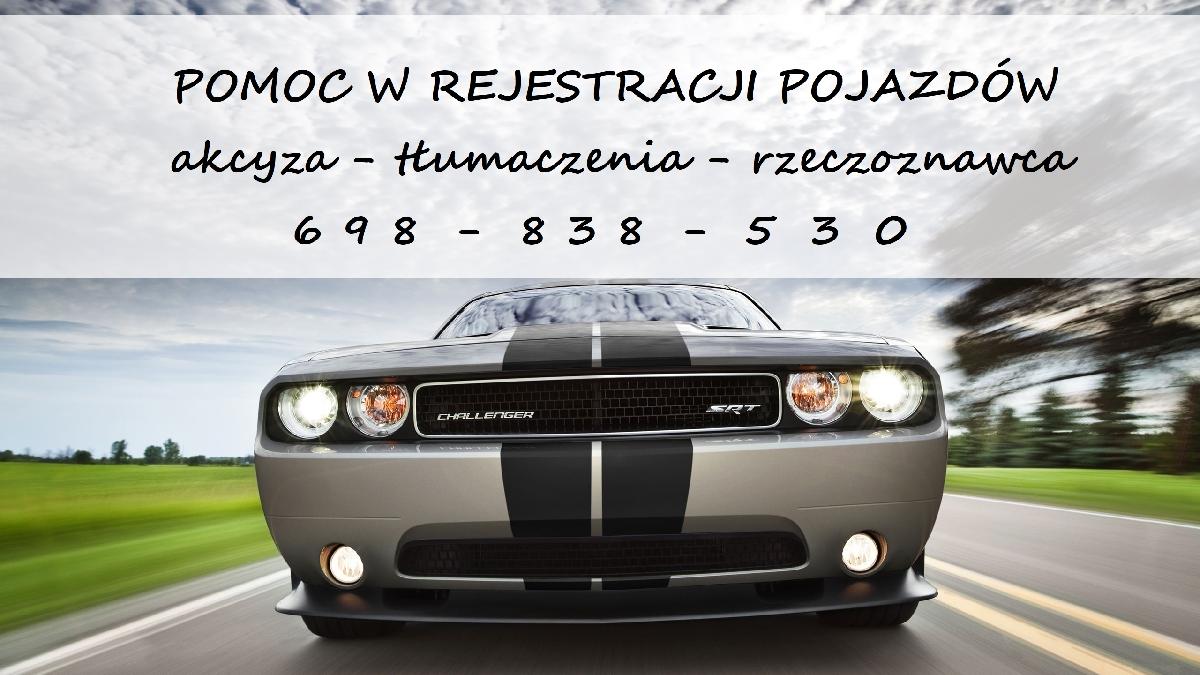 AKCYZA4YOU Profesjonalizm to podstawa Nie trać swojego cennego czasu na stanie w Urzędach zleć swoje sprawy urzędowe profesjonalnej firmie która wszystko załatwi za ciebie, Zajmujemy się kompleksową rejestracją samochodów z krajów Unii Europejskiej jak i spoza Unii: * składamy wnioski i odbieramy akcyzę z urzędu celnego * przetłumaczymy wszystkie wymagane dokumenty z każdego języka * zrobimy wycenę samochodu * załatwiamy wszelkie formalności w urzędzie skarbowym (VAT-23, VAT-24, VAT-25) * rejestrujemy Twój pojazd w wydziale komunikacji, a tablice dostarczamy wprost do Twojego biura/firmy/domu Przerejestrowujemy polski samochód na nowego właściciela: * Zarejestrujemy samochód poleasingowy lub wykupiony z leasingu * Wyrejestrowujemy * Odbieramy stale dowody rejestracyjne * Wtórniki dokumentów i tablic rejestracyjnych * Adnotacje HAK, GAS, VAT w dowodach rejestracyjnych REJESTRUJEMY TEŻ MOTORY I QUADY Tel. 698 838 530